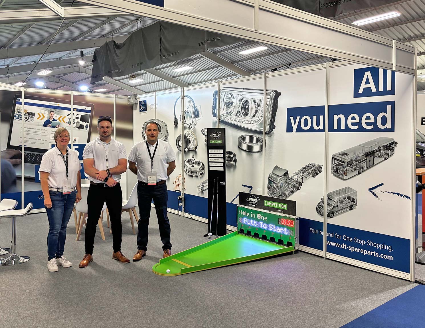La fiera e lo stand sono stati gestiti dal direttore generale Mark Todd, da Peter Shufflebotham (responsabile vendite), Kevin Petrie (responsabile vendite) e da un collega del team del servizio clienti. Inoltre, Maren Hormann (responsabile marketing) della sede tedesca del Gruppo ha supportato il team fieristico. Oltre alla presentazione dell'ampia gamma di prodotti DT Spare Parts, un altro oggetto d'interesse in fiera è stato il Premium Shop. Il programma di fedeltà del marchio premia la fedeltà delle officine con premi interessanti. Di particolare interesse è stata la presenza del nuovo membro dei Parts Specialists, Lee Harris, che ha avuto l'opportunità di raccogliere feedback direttamente dal mercato. Ogni filiale di Diesel Technic ha almeno un Parts Specialist che opera come punto di contatto per i clienti finali. Insieme ai video dei suggerimenti dei Part Specialists, gli esperti sono disponibili anche attraverso il loro HelpDesk per offrire supporto ai clienti.